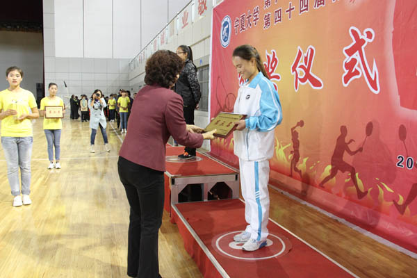 获得宁夏大学第十届全民健身体育文化节女子足球比赛第二名、学生广播操比赛第三名、团体总分第五名,第四十四届体育运动会第四名的好成绩,并荣获第十届全名健身体育文化节“精神文明奖”。校领导为澳门威尼斯人app