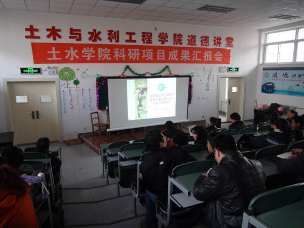杨明成、杨建森和孟云芳三位教授分别就自己承担的国家自然科学基金项目进行汇报交流,其中杨明成教授介绍了《边坡稳定性分析的极限平衡有限元法及其应用研究》的主要成果,杨建森教授介绍了《宁夏盐碱地带混凝土耐久性劣化模型与机理研究》的主要成果,孟云芳教授介绍了《干旱寒冷地区用复合生态纤维抗冻裂防渗节水应用基础研究》的主要成果。三位教授的汇报内容丰富,通过大量的图片、数据和图表等图文并茂的展示了各自的科研成果,取得了良好的效果。然后,与会教师就感兴趣的问题与三位汇报人进行了热烈的讨论,并就科研项目申请、立项以及完成过程中的经验进行了广泛的交流。