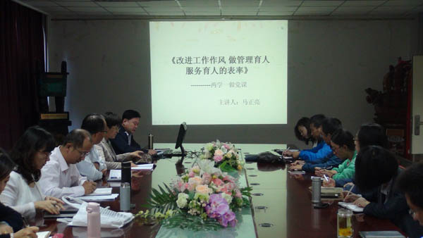 党委书记马正亮结合“两学一做”第二专题学习内容为全体参会人员做了题为《改进工作作风,做管理育人服务育人的表率》的专题讲座。马正亮书记以宁夏大学“十三五”总体发展为背景,结合澳门威尼斯人app