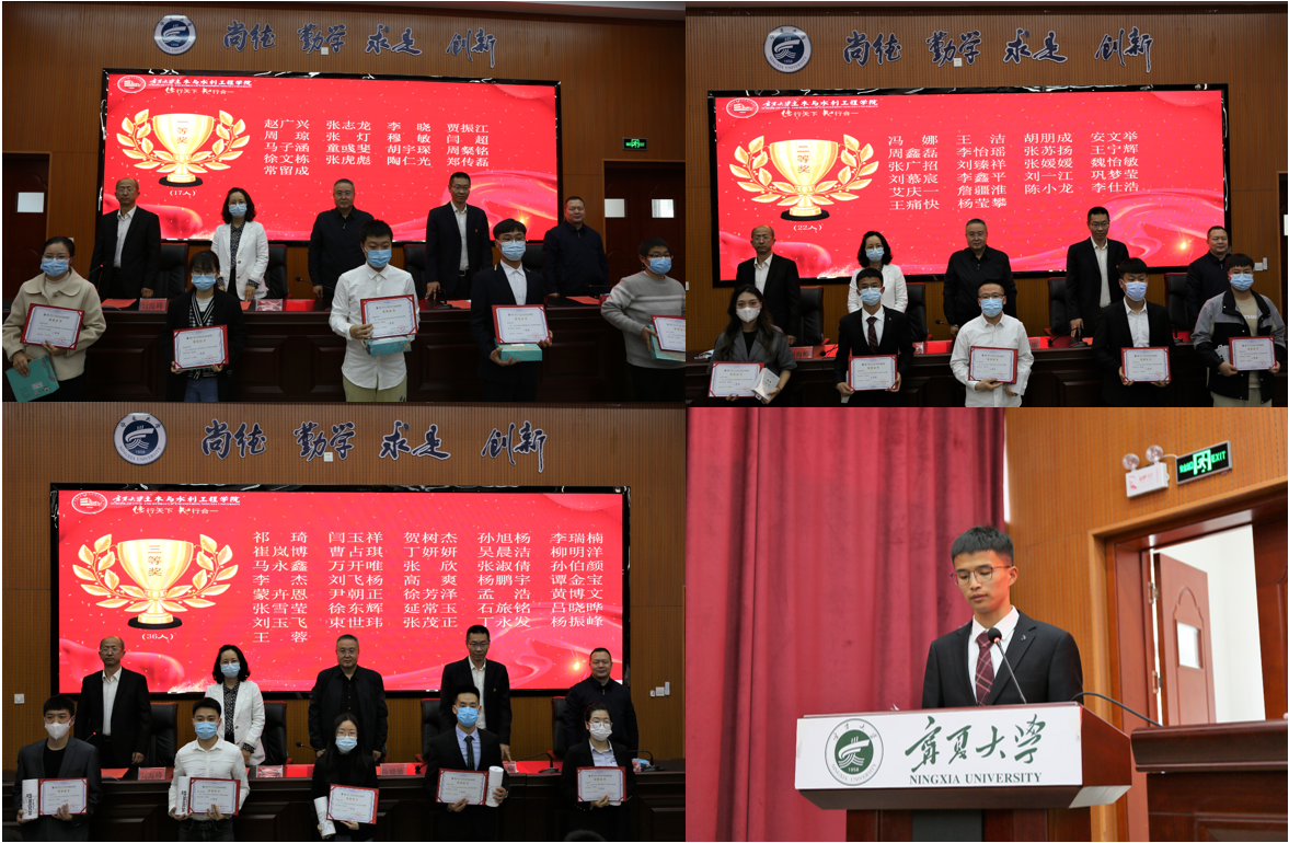 表彰文件。2020级研究生张广招作为学生代表发言,介绍了自己参与学术论坛的心得体会,平时的积累和重视的态度是成功的关键之所在。同时分享了自己对于学习方法的认知与理解。随后,各领导为获奖研究生代表颁发了荣誉证书和奖品。
