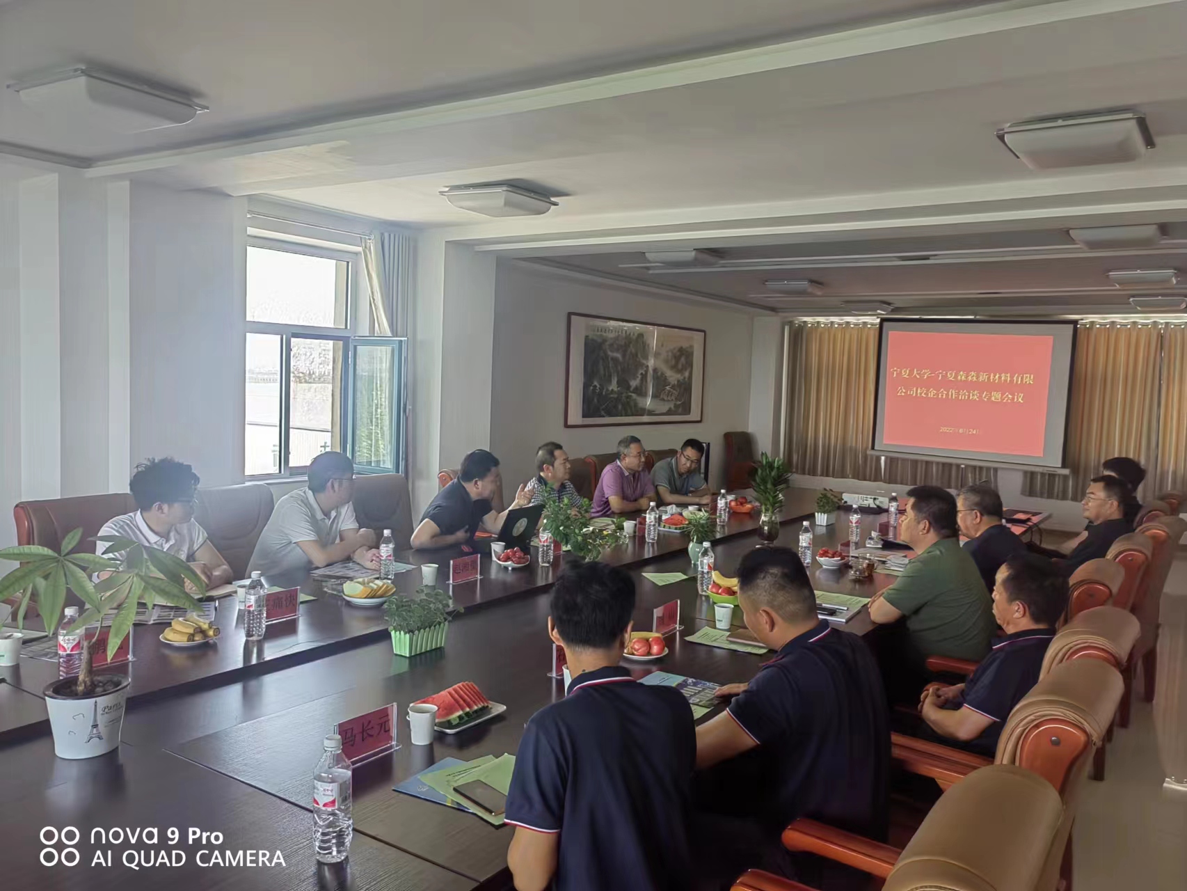 在宁夏森淼新材料有限公司,总经理黄小东介绍了公司的基本情况和公司目前开展的主要业务,提出了校企合作愿景目标。杨文伟教授介绍了宁夏土木工程防震减灾工程技术研究中心情况及合作设想,初步提出了共同研发的方向及实验室共享的思路等。宁夏森淼新材料有限公司董事长池浩要求公司组成工作专班对接本次校企合作事宜,提出公司研发需求清单,并落到实处,希望能尽快起草好合作框架,公司在人、财、物方面提供全方位的支持,让校企合作早日落地生根。