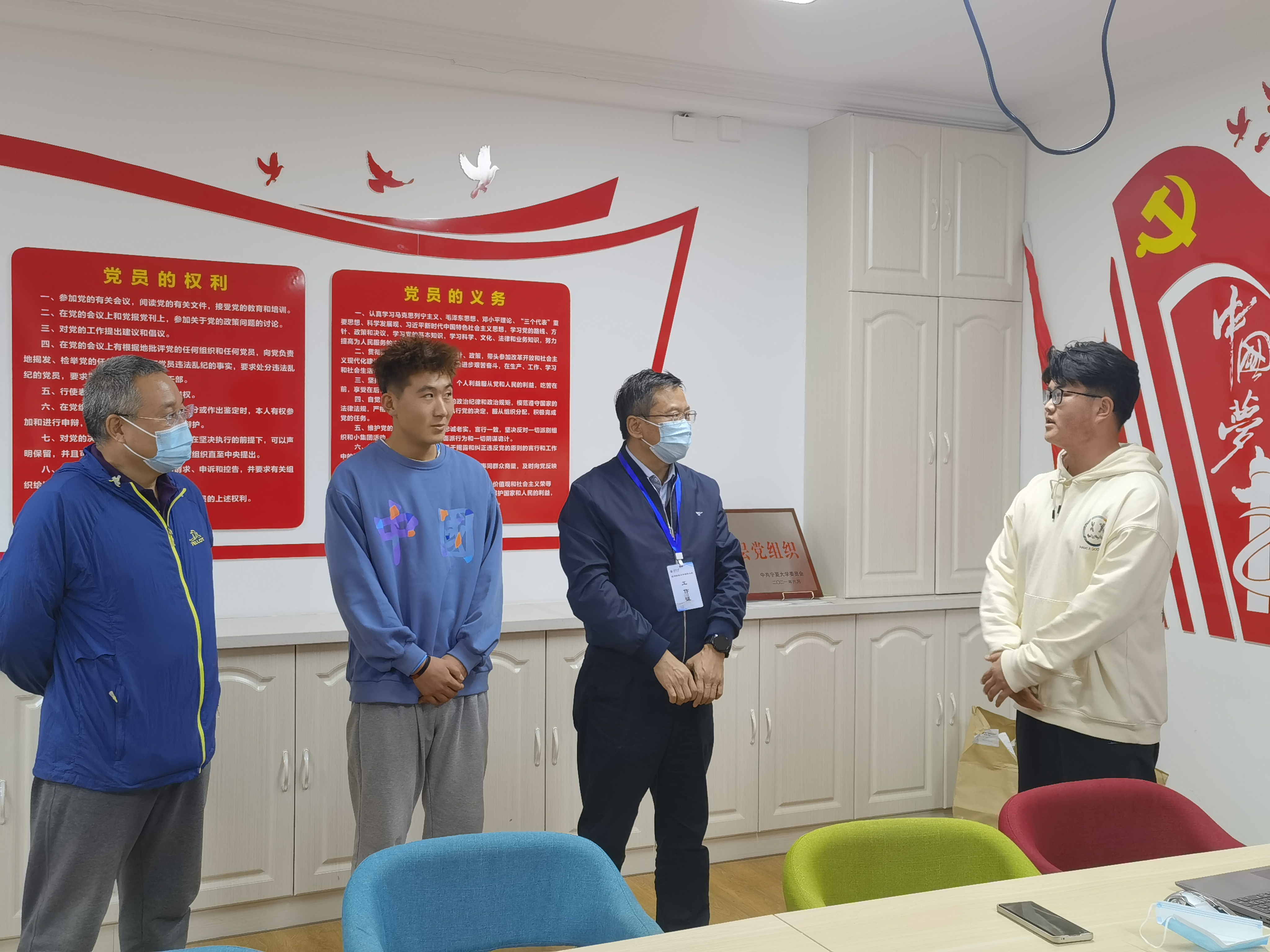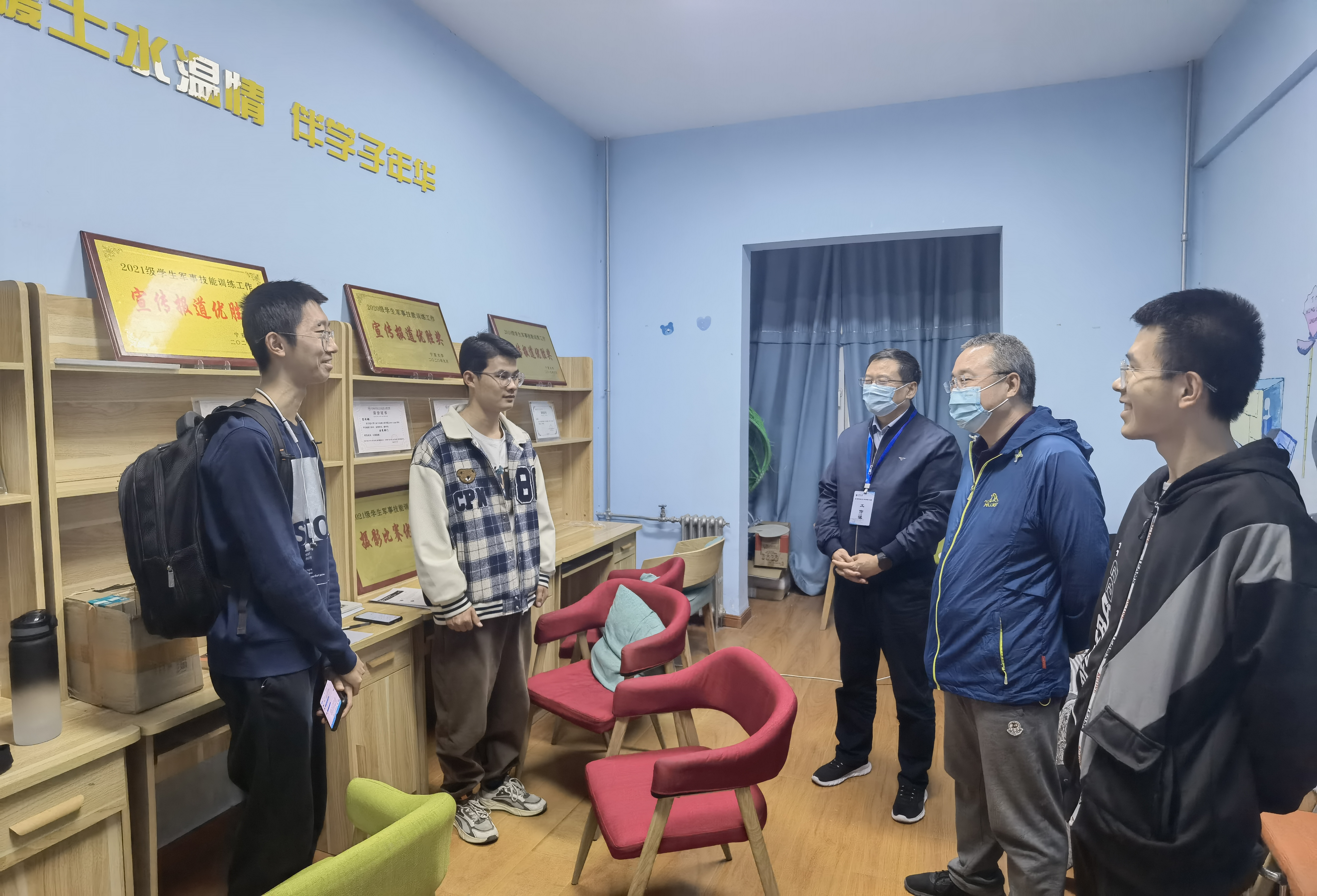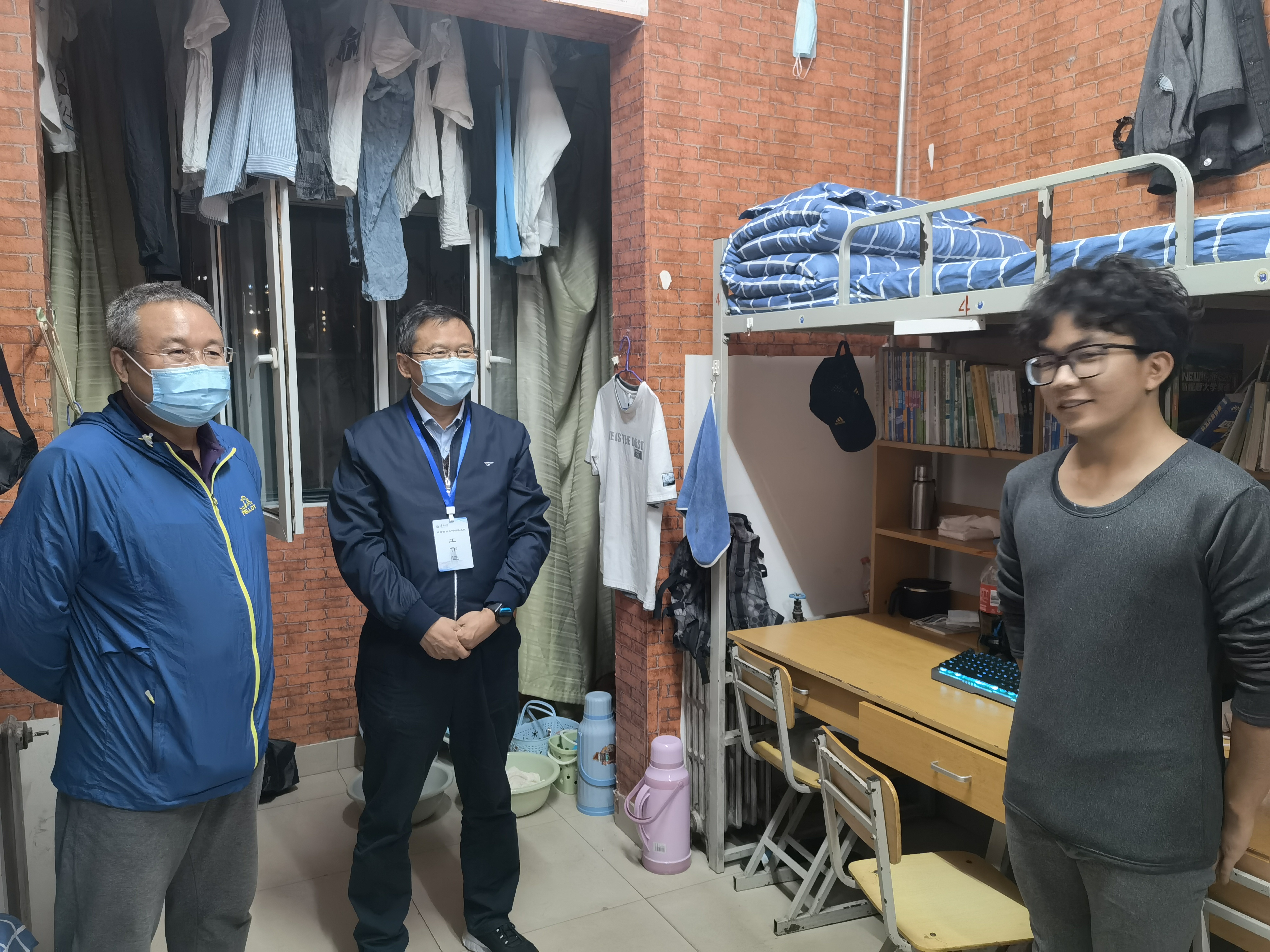 在走访宿舍时,王忠静亲切慰问了学生在平时的学习和生活中有无困难和需要学校协调解决的事宜,鼓励同学们要走下网络、走出寝室、走向操场,积极参加各类有益身心的集体活动。同时,高度关心疫情期间学生的思想状态,交谈中鼓励同学们积极向党组织靠拢,交流现场氛围融洽。