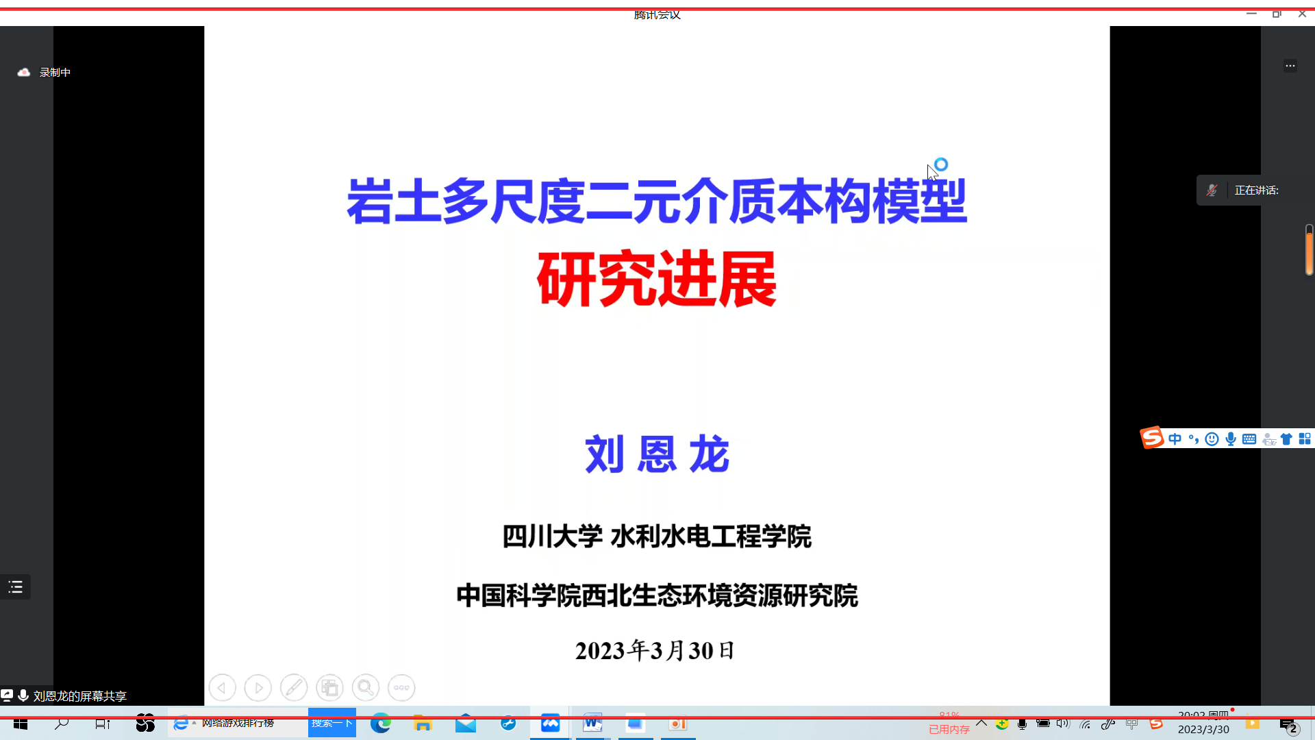刘恩龙教授为我校师生做题目为“岩土多尺度二元介质本构模型研究进展”的线上学术报告。报告由刘海峰副院长主持,澳门威尼斯人app