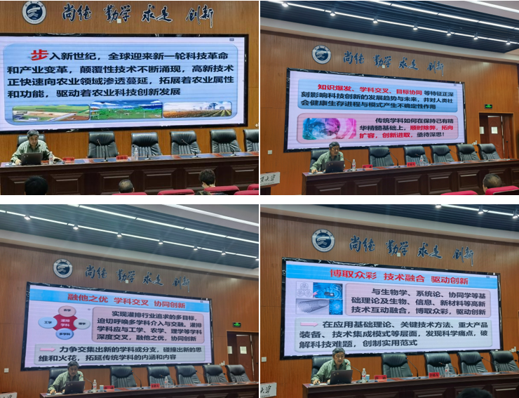 2024�4�24日下午,应学院邀请,中国水利水电科学研究院水利研究所名誉所长,国家节水灌溉北京工程技术研究中心原主任许迪研究员为我院师生做题目为“灌排科技创新发展研究刍议”的学术报告。报告会由学院党总支书记尹娟教授主持,副院长李王成教授、韩丙芳教授、水利系主任王炳亮副教授、青年教师刘学智、王帅等师生100余人参加学术报告�