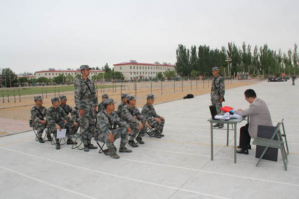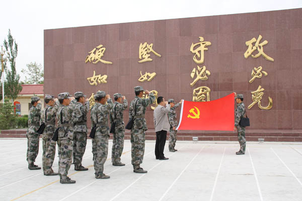 国防生党支部书记郭利老师带着支部4名发展对象及1名预备党员前往某红军师钢铁团召开了一次“特殊的”国防生党支部党员接收及转正大会。