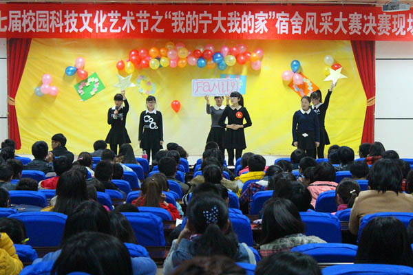 2014年11月19日晚7点整,由共青团宁夏大学委员会、宁夏大学后勤集团主办的宁夏电信“天翼杯”第十七届校园科技文化艺术节系列活动之“我的宿舍,我的家”宿舍风采大赛决赛在A区文科楼隆重举行。