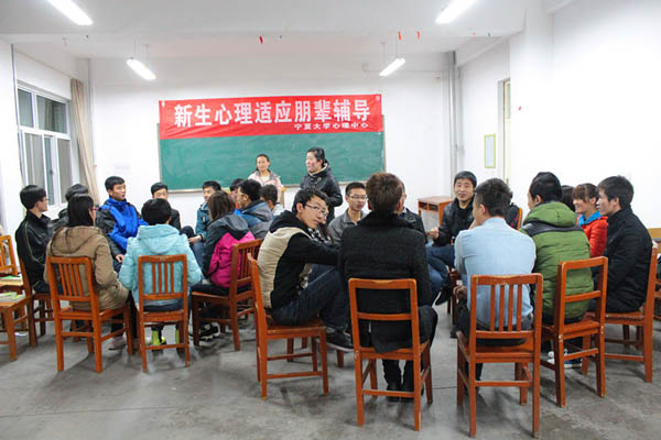 团委学生会主办、心理部承办的新生心理适应朋辈辅导活动在C区工科楼举行。张彩虹、伊金芳、刘晓洁、曹梦玉等10余名来自宁夏大学心理辅导中心的高年级同学为澳门威尼斯人app