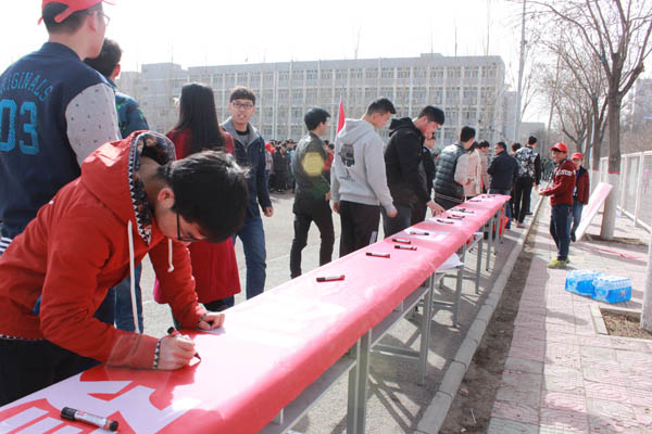 最后,在主持人郜英洲的带领下全体学生宣誓和签名仪式,通过本次活动我们充分认识到随着时代的进步有些优秀的品质是不可以被忘记的,人与人之间是应该有温情存在,帮助他人弘扬雷锋精神是我们义不容辞的责任。让我们携起手来在祖国最需要我们的地方奉献出自己的力量。