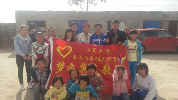 “梦之翼”志愿者大队和社团实践部共十余名同学带着笔记本、自动铅笔等礼物从宁夏大学出发,前往军马场支教。