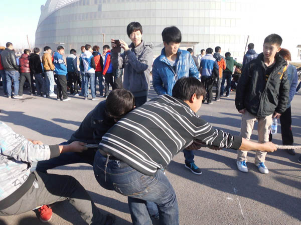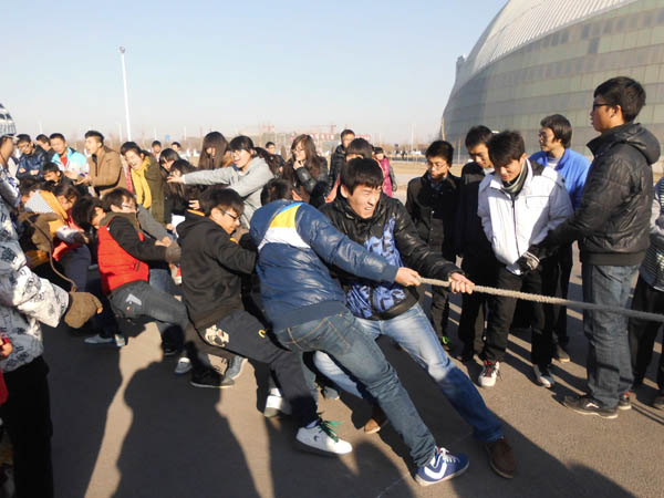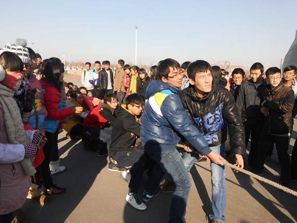为促进班级间交流、提高团体凝聚力,2013年12月11日下午澳门威尼斯人app 举办迎新生拔河比赛。比赛过程中,气氛异常紧张。各班的啦啦队热情火爆,为参赛同学增添了不少信心。加油声、呐喊声,充斥在校园上空,久久的回荡。即使是寒冬时节,依然没有抹杀学生们的热情,比赛气氛被一次又一次的推向高潮。农水班获得此次比赛的冠军,城规班与建筑班分别荣获亚军、季军。