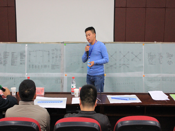 院长毛明杰主持并发表讲话,他希望各位参赛选手充分发挥自己的聪明才智,沉着、认真的对待比赛,以良好的心理素质和精神风貌,赛出风格,赛出水平,取得好成绩。比赛由刘海峰副院长主持进行,各团队展开了激烈的竞争,一张张精美的设计图纸依次陈列在各位评审和同学眼前。各个团队争分夺秒,通过五分钟陈述,用最简练的话语介绍出他们的设计思路和方案。在面对评委老师的提问时,他们镇定自若,展现出了各自扎实的专业基础知识和丰富的课外知识储备。
