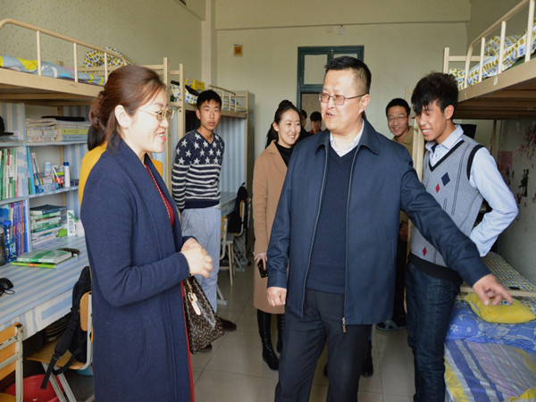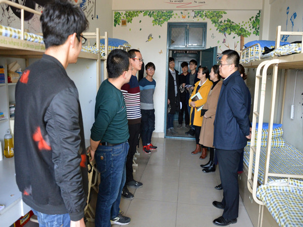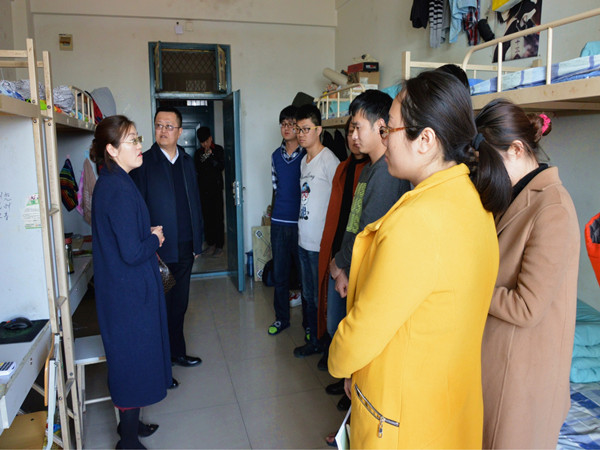 男生宿舍六楼开始向下逐层进行。在检查的过程中,高书记和柳书记亲切地询问了各年级的学生的学习情况、生活上是否有困难,聆听了毕业生的未来计划和就业情况并对个别宿舍中出现的问题进行指正。随后,各位老师对女生宿舍进行了抽查。女生宿舍整体干净整洁,学习与生活用品摆放整齐,有着良好的学习环境。老师们对此大加赞赏,并提出男女宿舍应加强交流,共同建设良好的宿舍环境,进而加强学风建设。最后,高书记分别询问了15号楼与21号楼的宿舍管理人员与保洁人员,详细了解了学生的日常情况并对她们的辛劳付出表示感谢。