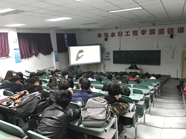 会议开始,王灿学长从“软件的概述”、“软件的市场需求和在工作中的应用”、“部分软件的学习方法”及“相关网站的推荐”四个方面进行讲解,在讲到“软件的应用”时,他以我校c区“大学生活动中心”为模向同学们展示了部分软件的应用方法,并逐一介绍了“犀牛”、“SU”、“BIM”等软件的特性及优点。紧接着,李东胜学长以“斯洛文尼亚学生公寓”为例详细讲述了实体建筑的空间、构造及设计理念,用他丰富的经验向在场同学传授自己的学习技法。两位学长精彩的讲解使在场同学大开眼界,教室里顿时响起了雷鸣般的掌声。会议的最后,主讲人组织在场同学们以提问的方式进行互动交流,学长学姐们则耐心解答,大家纷纷表示在这次交流会中受益匪浅!