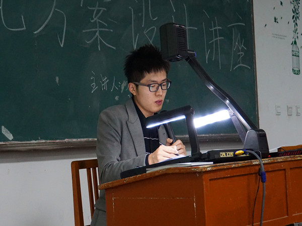 讲座开始,王程林老师首先为在场同学一一发放了精装手绘书籍,同学们认真翻阅书本时,王老师说道,“手绘是表达建筑设计方案一种很好的方式,也是我们必须掌握的技能之一”。紧接着,他便以几座知名建筑作为案例,详细为同学们讲解了建筑设计与形体组织的方法,并亲自手绘演示了一座建筑的设计方案。同学们认真聆听,悉心学习,现场发出阵阵掌声。