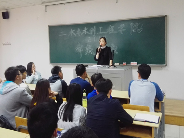 会议在同学们的掌声中开始。党委副书记柳松洁表示,目前14级同学正处在关键时期,考研和就业是同学们目前必须认真考虑的问题,同学们心中应该有一把属于自己的秤,明白究竟应该朝哪一个方向去努力。并指出,坚持自己的理想是唯一的选择,大家应该有一个目标,并且将之付诸于实践,应该为学弟学妹们树立一个好的榜样!书记的讲话赢得了在场所有学生老师的阵阵掌声。与此同时,柳书记还就宿舍问题向同学们提出了要求,他希望同学们的宿舍是干净的,是整洁的,是真正的家。