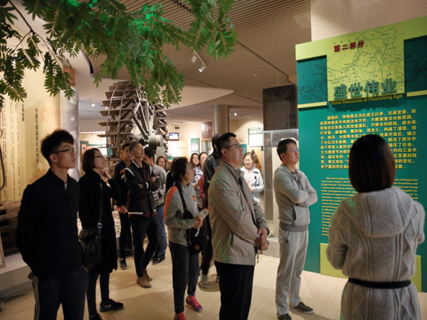 师生一行首先来到位于青铜峡水利枢纽的宁夏水利博物馆,跟随导游,大家打开了宁夏水利世界的一扇大门。上溯旧石器时代,近至今日,同学们系统地学习了宁夏水利工程的地域特色和历史沿革,技术的创新和应用,水利事业发展的机遇与挑战等专业性知识。这是一次结合专业学习的参观考察,在扩大知识面的同时引发新疆同学对自身专业的思考和兴趣,从而加深认识。