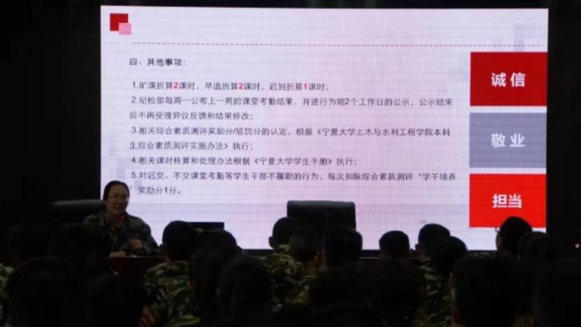 王娜的讲解诙谐幽默、生动贴切,全体学员认真学习、全神贯注。此次入学教育让到场全体学生清晰认识到宁夏大学教学规定的严格,从而使学生对自己今后的行为更好地加以规范。