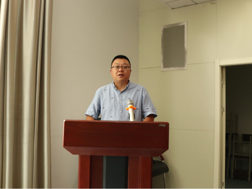 教师为新生指点迷津。他用幽默风趣的语言,向19级新生提出了三点建议,不要沉迷游戏;不要作弊;勇于挑战自我与同学合作。
