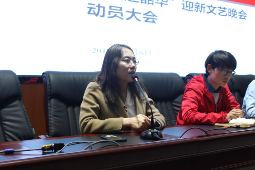 蒋宇欢鼓励大家把握机会,充分利用晚会这一平台展示自身风采,丰富自己的大学生活,他还对保障工作作了说明。