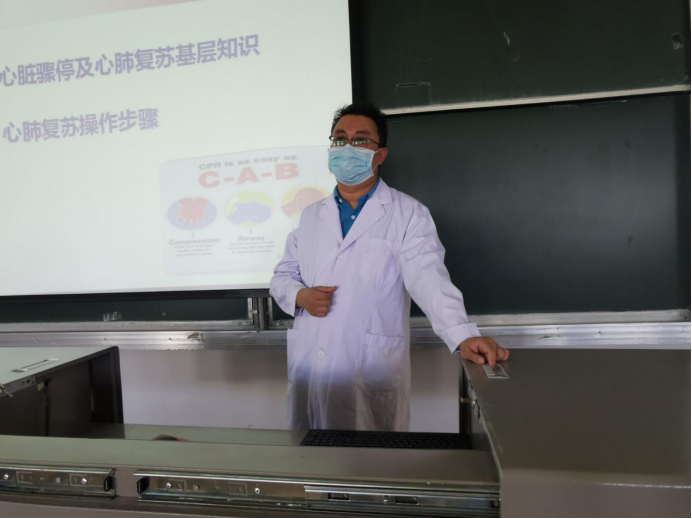 2020年9月23日下午,为更好的增强同学们对于新冠病毒了解以及提高心肺复苏技能,澳门威尼斯人app下载 邀请宁夏人民医院四位医生护士为大家进行了一场实践与理论相结合的教学。