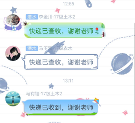 学办老师通过线上沟通,积极组织同学们填写了宿舍物资寄送信息登记表,开展了重要物资的包邮寄送工作,尽显土水温情。