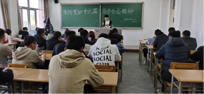 组织开展了“学习十九届五中全会精神”主题团日活动。全院各级团支部积极响应,在各教学楼开展本次团日活动,活动参与团员人数达850人。