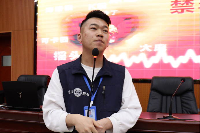 讲座中,张琦与同学们积极互动,从宁夏的禁毒历史开始,向同学们说明了毒品的定义、种类、危害及后果,并给新生举出了发生在身边的例子。他呼吁同学们要警惕毒品,远离毒品,树立正确的人生观、价值观。