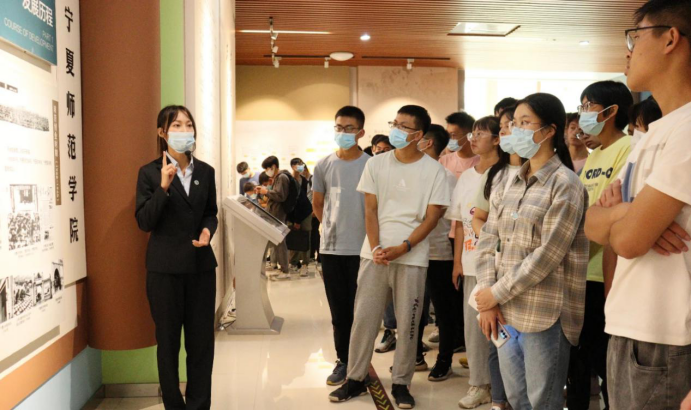 “爱校荣校的归属感教育”主题校史展览活动在宁夏大学贺兰山校区科技楼一楼校史馆开展。2021级全体新生参加了此次活动。