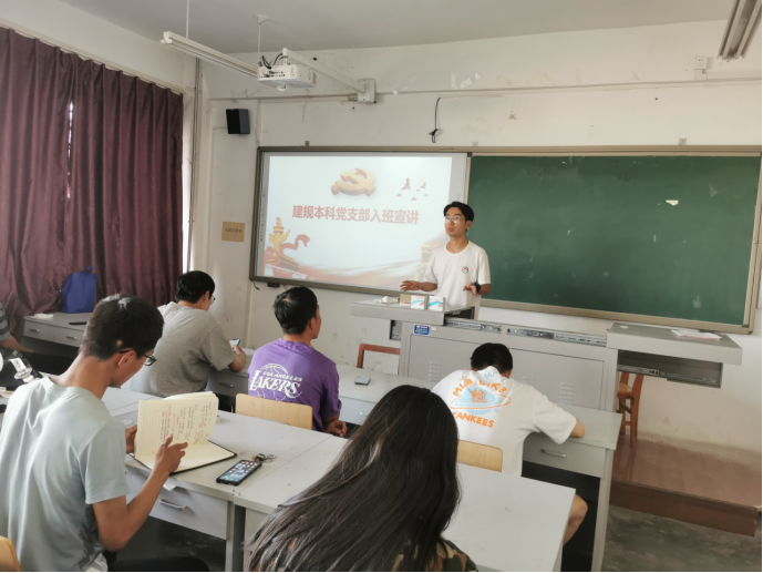 为进一步宣讲党的方针政策和理论知识,引导2021级新生积极向党组织靠拢,发挥基层党支部的战斗堡垒和榜样模范作用,9月30日下午,建规本科党支部副书记贾浩和宣传委员陈涛前往2021级建筑规划类1班和2班开展“党支部进新生班级”宣讲活动,2021级建筑规划类专业所有同学参加了本次宣讲活动。