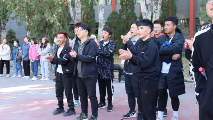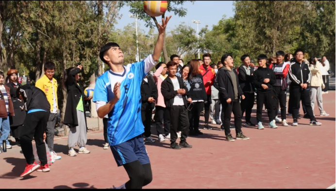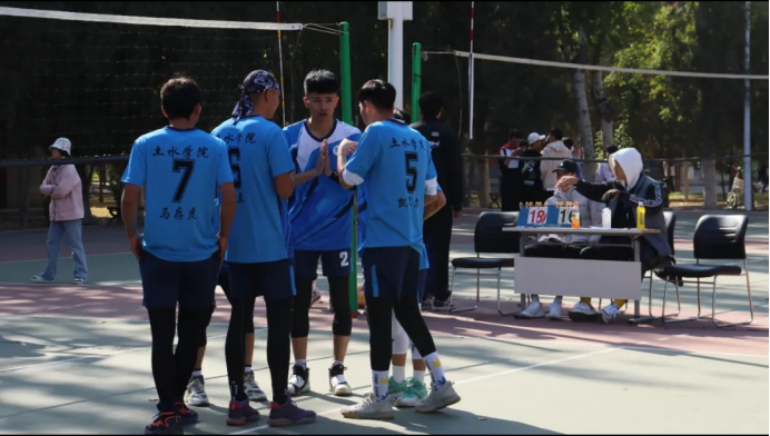 “土水加油”的助威声铿锵有力,此起彼伏,男排队员轻松夺下第一局的胜利。