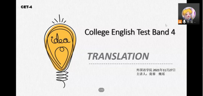 的学长学姐们对英语四六级听力阅读等的讲解,本次英语四六级线上辅导答疑活动主要对翻译和写作部分进行了补充和讲解,使同学们能够更加完善地掌握英语四六级试题,熟悉英语考试中各部分的得分点和注意事项,在四六级考试的时候更加有把握。
