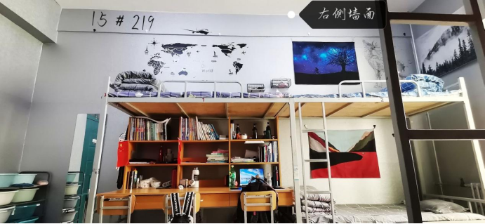 本次宿舍风采大赛荣获一等奖的是15号楼219宿舍。最美宿舍,你我装扮,宿舍vlog里处处洋溢着青春的气息,视频里的六位干饭男孩脸上都挂着装饰完宿舍的欣喜。宿舍整体简洁大气,却又不失温情。