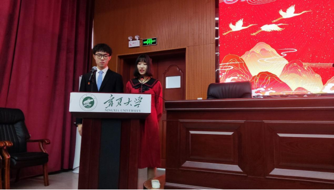随后,主持人带领在座全体师生朗诵爱国主义名言,“一身报国有万死,双鬓向人无再青”(陆游)、“爱祖国高于一切”(肖邦)、“只有热爱祖国,痛心祖国所受的严重苦难,憎恨敌人,这才给了我们参加斗争和取得胜利的力量”(阿·托尔斯泰)。