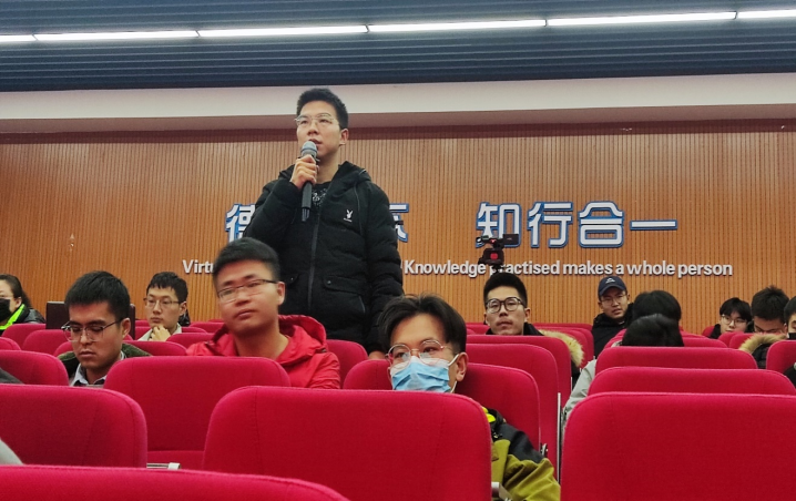 道德宣讲员何进宇老师从道德讲堂简介、道德模范学习和道德讲堂学习内容三个方面为同学们详细讲解了道德的重要性。他表示道德讲堂从试点到推开,从规范到提升,从实践到创新,充分发挥以德育人,以文化人的独特优势,已经成为推动经济社会又好又快发展的强大引擎,成为全国精神文明建设的重大典型。接着,他列举了在抗击SARS和“新冠”的斗争中,钟南山主动请缨,成为抗疫的领军人物,并本着实事求是的精神,主动向国外的专家学者以及新闻媒体介绍中国政府所采取的正确措施,维护了祖国的声誉的例子,提醒我们一定要向身边优秀的道德模范学习。此外,何老师还以党员身份给大家带来了党史知识的学习,同时传达了党中央最近召开的十九届六中全会精神与思想,进一步提高了在座师生的政治觉悟。在场师生对何老师的宣讲深表赞同,大家表示,中国特色社会主义进入新时代,作为新时代的青年学子,必须大力弘扬爱国主义精神,不忘初心、牢记使命,把爱国主义教育贯穿国民教育和精神文明建设全过程,进而全面付诸报国强国之行,把爱国主义精神转化为建功立业新时代的实际行动。