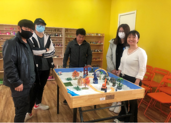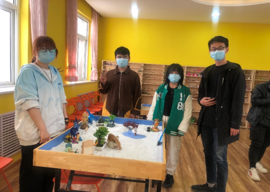 本次沙盘活动中,同学们在秦莉老师的引导下感受沙子,熟悉沙具,并根据内心的想法在沙盘上共同创造出完整的沙盘场景。
