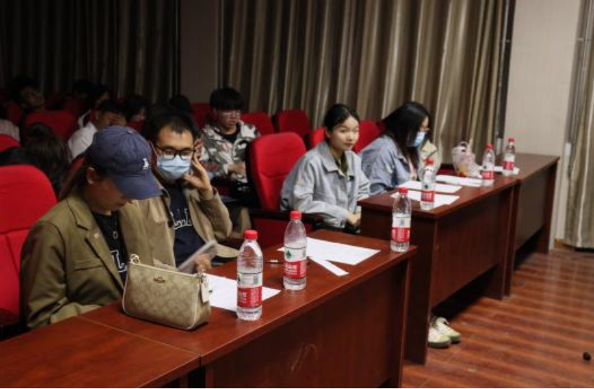 的胡江涛和茹愿、校合唱团省级二等奖获得者黄佳芸、原文艺部主要负责人王雅妮、原宣传部负责人郝悦、学风建设部主要负责人张彦波作为本次比赛评委。