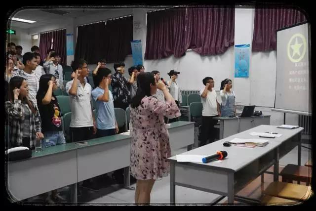 最后,团委副书记来大伟、胡宇琛共同为新团员佩戴团徽,在胡宇琛的带领下,全体新团员庄严宣誓,现场气氛在新团员铿锵有力的宣誓声中显得格外庄严。