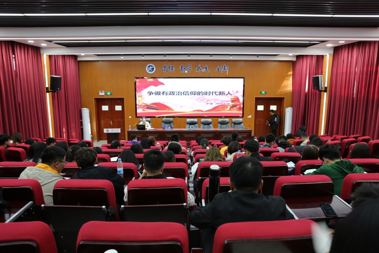 尹娟副书记以《争做有政治信仰的时代新人》为题,为全体学员做了授课辅导,授课首先从“新时代” “三全育人” “立德树人”与“三全育人”之间的关系以及立德树人的意义等内容阐述了新时代高等教育育人新格局新理念。随后,带领大家共同学习加强党性修养的重要意义,她强调,全体学员要自觉加强党史学习,加强党性修养提升,养成高尚的道德情操与品德,努力学好科学文化知识,从自身做起,从小事做起,端正学习态度,提高学习热情,努力成为合格的社会主义建设者和接班人。